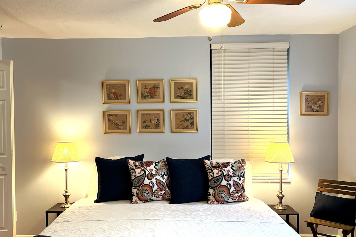 海にインスパイアされた私たちのワンルームアパートは最近改装され、ジャンガロー風に装飾されており、快適なキングサイズベッドから休暇の雰囲気を味わうことができます。 近くのビーチからのクールで快適な逃避行を感じるように作られており、食事の準備や在宅勤務に必要なものがすべて揃っています。 人気の高い歴史的なグランドビューハイツの中心部に「ドッキング」していることを誇りに思っています。ハワードパーク、コンベンションセンター、ダウンタウンウェストパームビーチ、ウォーターフロントまで徒歩で行けます。