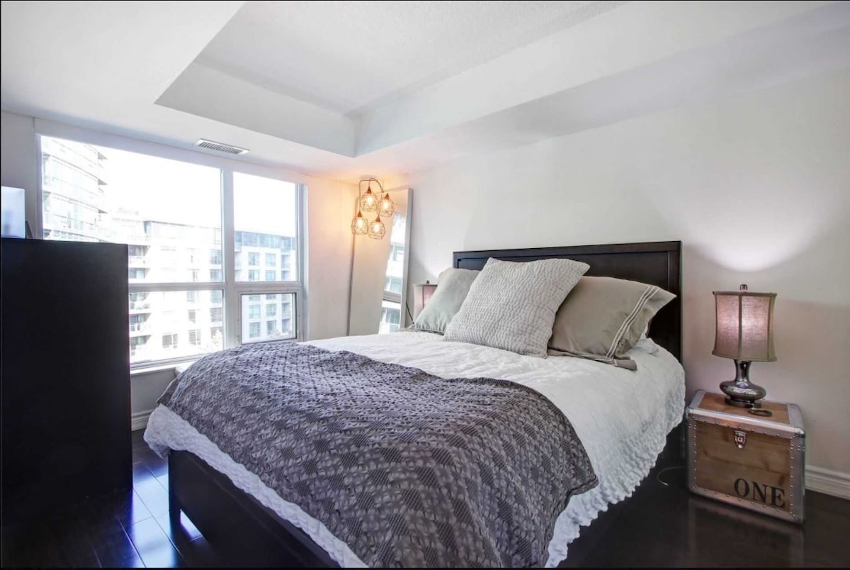 スタイリッシュなコンドミニアムでトロントのダウンタウンを体験しましょう!明るいキッチンで1日をスタートし、バルコニーでコーヒーをお楽しみください。街を探索した後は、Netflixでリラックスしましょう。 CNタワー、ロジャースセンター、リプリーズ水族館、エキシビジョンプレイス、レストラン、ウォーターフロントまで徒歩で行けます。 フルキッチン、キューリグ、仕事用デスク2台。建物にはプール、ホットタブ、サウナ、ジム、季節限定の屋上バーベキュー、無料駐車場、セルフチェックインがあります。 7泊以上の滞在と返金不可の予約には割引が適用されます。トロントでの忘れられない旅を今すぐ予約しましょう!