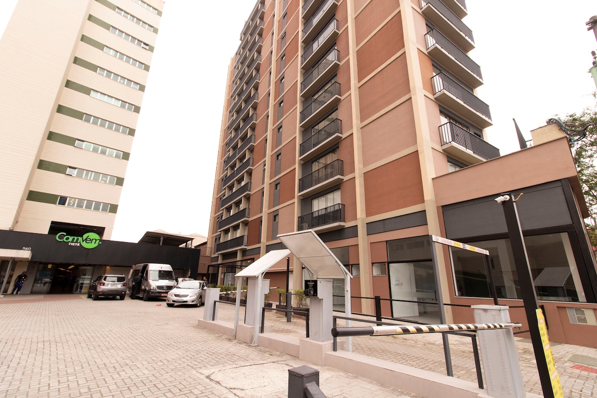 PRÓXIMO DE TUDO: Expo Center Norte, Shopping Center Norte, Metrô Tietê, Rodoviária Tietê, Anhembi, Sambódromo, Marginal... Studio confortável, aconchegante e completo para até 3 adultos e 1 criança. Cama box de casal com cama auxiliar. Cozinha com todos os eletros domésticos e utensílios. Roupas de cama, mesa, banho e Itens de higiene. Ar condicionado, secador de cabelo, ferro de passar...