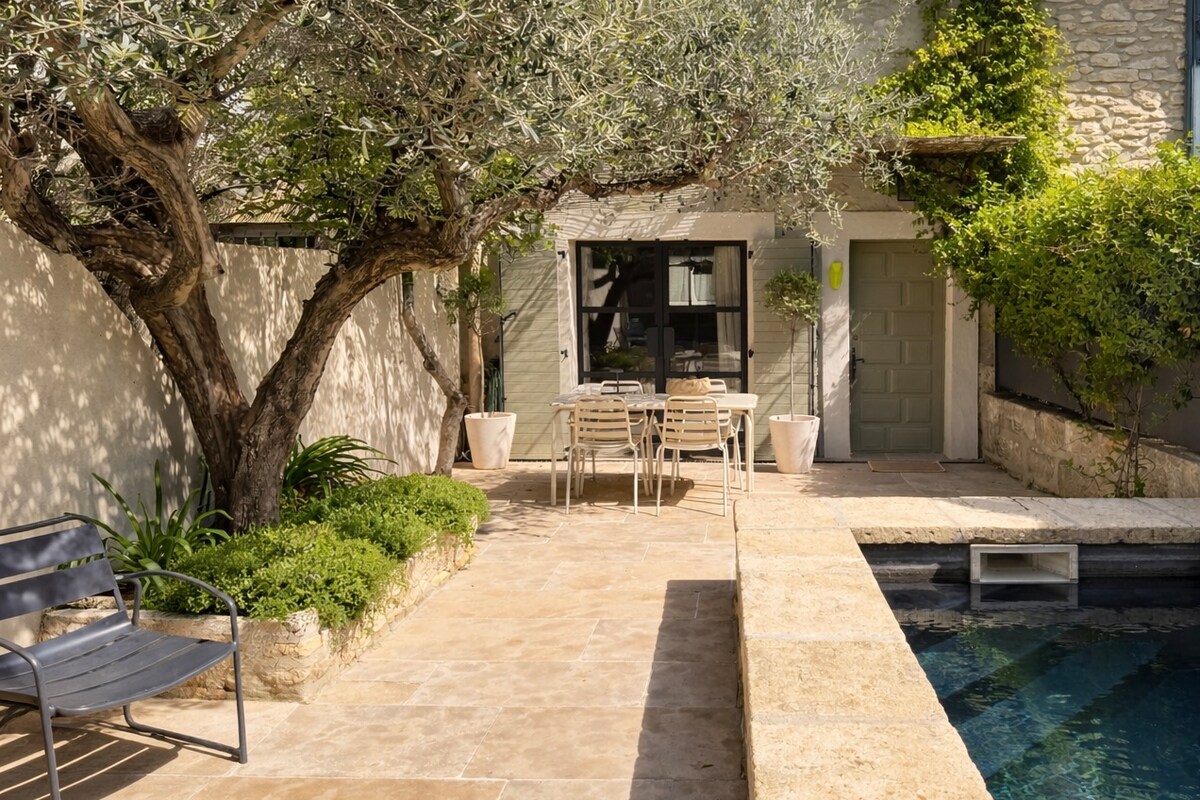グルの、骨董品商の建築家が設計した、民間のオーガニックな村の家。素材、アンティーク、本物の魅力が融合した、生き生きとした空間。12メートルのプールとオーナーの庭園へのアクセスは、他の5つの静かな宿泊施設と共有されています。村の中心部で、親密な体験ができます。無料の公共駐車場は、カフェ「ル・グルトワ」のすぐ向かいにあり、徒歩1分です。