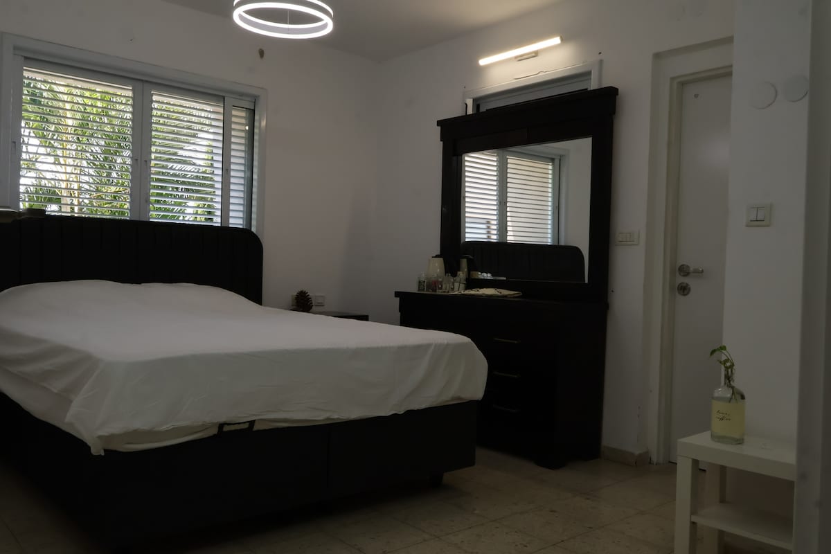 ヘルツリーヤのノフ・ヤム地区中心部にあるノフ・ヤム・ゲストハウスへようこそ!🌿 静かで田園的なエリアに位置する、プライベートハウスの2階に独立したエントランスを備えた、居心地の良い広々としたダブルルームです。徒歩圏内には美しいシドニー・アリ・ビーチと近隣のショッピングセンターがあります。 ユニットは2階建てで、エントランス階には設備の整ったキッチン、ダイニングエリア、ユーカリの森に面した幻想的なバルコニーがあります。2階には、ダブルベッドのあるオープンロフト、テレビ付きのリビングルーム、そしてすりガラスの壁で仕切られたバスルーム/シャワールームがあります。 快適さ、静けさ、そして海への近さが完璧に融合したお部屋です。