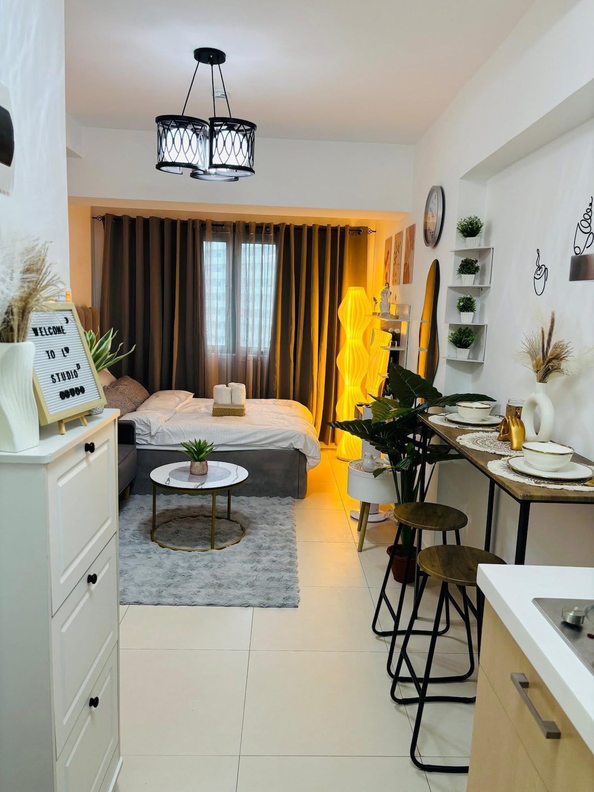 ご自宅のような快適さとホテルのような豪華さが完璧に融合したこの宿泊先で、お客様のリラクゼーション、楽しみ、快適さを最優先に取り組んでおります。 もともと2ベッドルームのコンドミニアムとして設計されていましたが、このユニットをバルコニー付きの1ベッドルームスイートに改装し、広々としたリビングとダイニングエリアを提供しています。 家電、エンターテイメント、ゲーム機が完備されたこのケソンシティのコンドミニアムは、毎日、毎週、毎月のレンタルが可能で、次のステイケーションに最適です。
