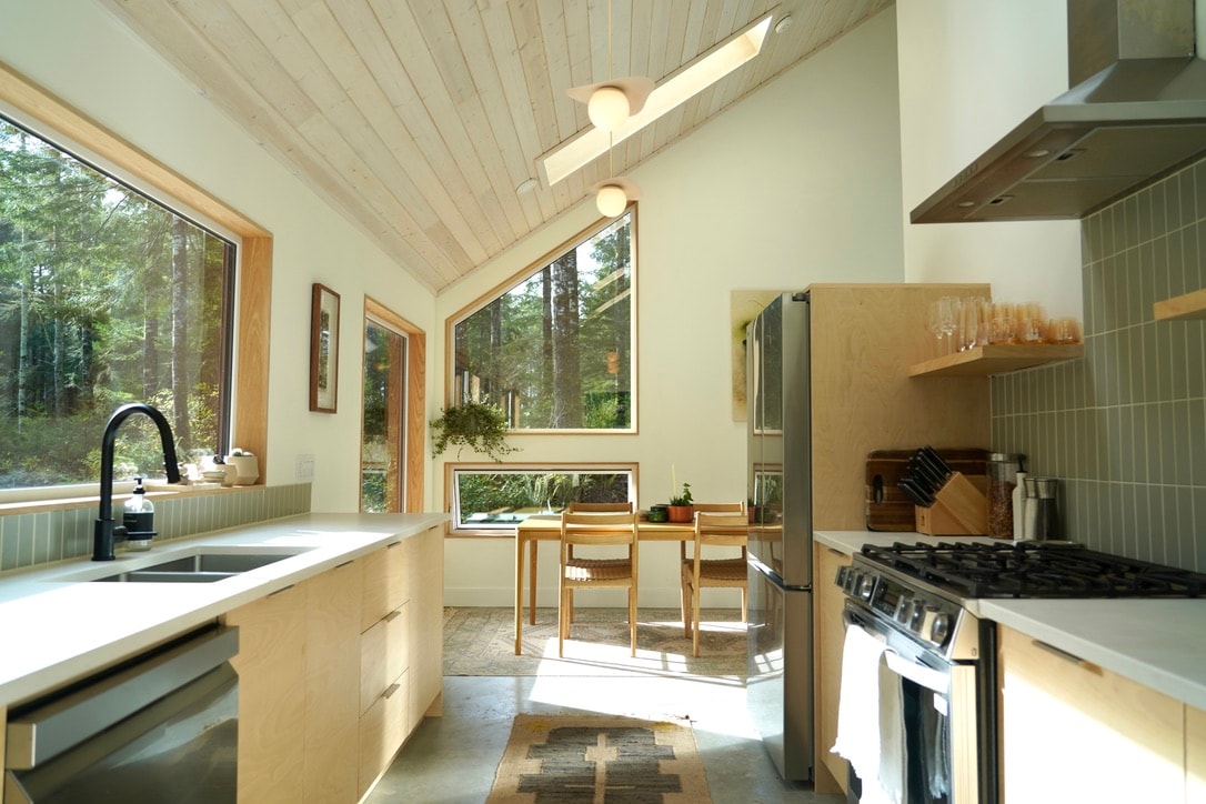 ブリティッシュコロンビア州ジョーダンリバーの高木に囲まれたWoodshedは、静かな隠れ家的な空間です。すっきりとしたライン、天然木の仕上げ、ミニマルなデザインが、緑豊かな沿岸の森と調和しています。広々とした窓から差し込む光と、遮るもののない常緑樹の景色が、静けさと自然とのつながりを生み出します。落ち着きを感じさせるように設計されたこの空間は、温かみとシンプルさのバランスが取れており、木々のささやきや遠くから聞こえる海の音が、休息と内省の完璧な背景を作り出しています。