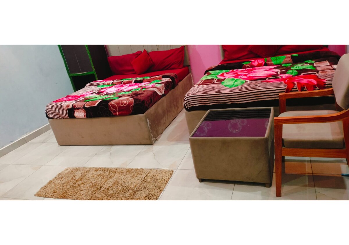 Bring the whole family to this great land of RAM Ayodhya and get the blessings of Ram lala , Sita Mata Hanuman ji and holy river Saryu also. Our place is spacious with rooms having 2 double beds and all the necessary ammeneties including sun shines balcony and proper ventilation with attached toilet and washrooms.