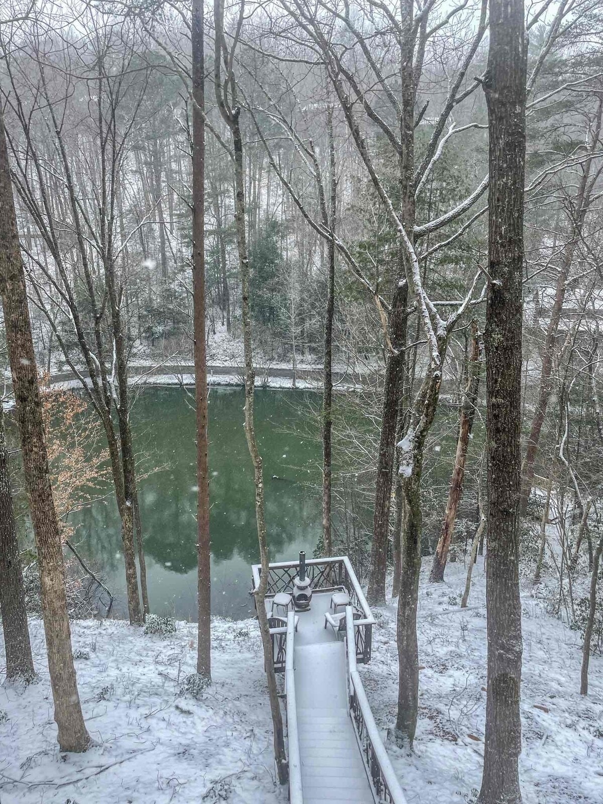 Enjoy lake and mountain views in this updated oasis amongst the trees. Whether you're looking for an outdoor adventure or a rejuvenating escape, we have it all! Situated on a five acre lake, enjoy the private dock and use of our two paddle boards and canoe. After a day of hiking, decompress in the hot tub and sauna. Tons of space to gather both indoors and outdoors, we hope you'll enjoy all the modern amenities while reconnecting with nature. Just 12 minutes to downtown Ellijay!
