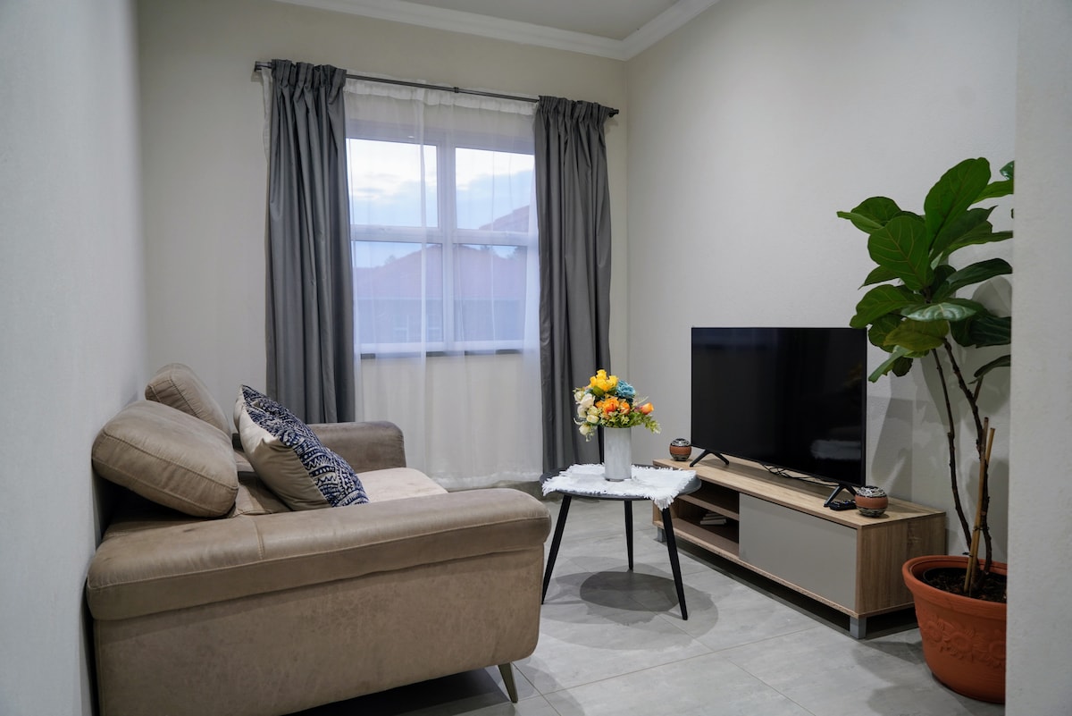 フォーウェイズにある明るく風通しの良い1ベッドルームの1階アパート。 フォーウェイズモールからわずか2.1 km、モンテカジノや人気のショッピングスポットの近く。 日当たりの良い庭でバーベキューを楽しみながらリラックスしましょう。自炊。特大クイーンベッド、バスタブとシャワー付きのバスルーム。インバーターにより、停電中もテレビとWi-Fiを使えます。 無料Wi-Fi、NetflixとYouTubeを備えたスマートテレビ。 エステートの共用プールとジムをお楽しみください。カップル、お友達、またはビジネス滞在に最適です。宿泊先を予約して、快適さ、便利さ、そしてラグジュアリーな雰囲気を体験しましょう!