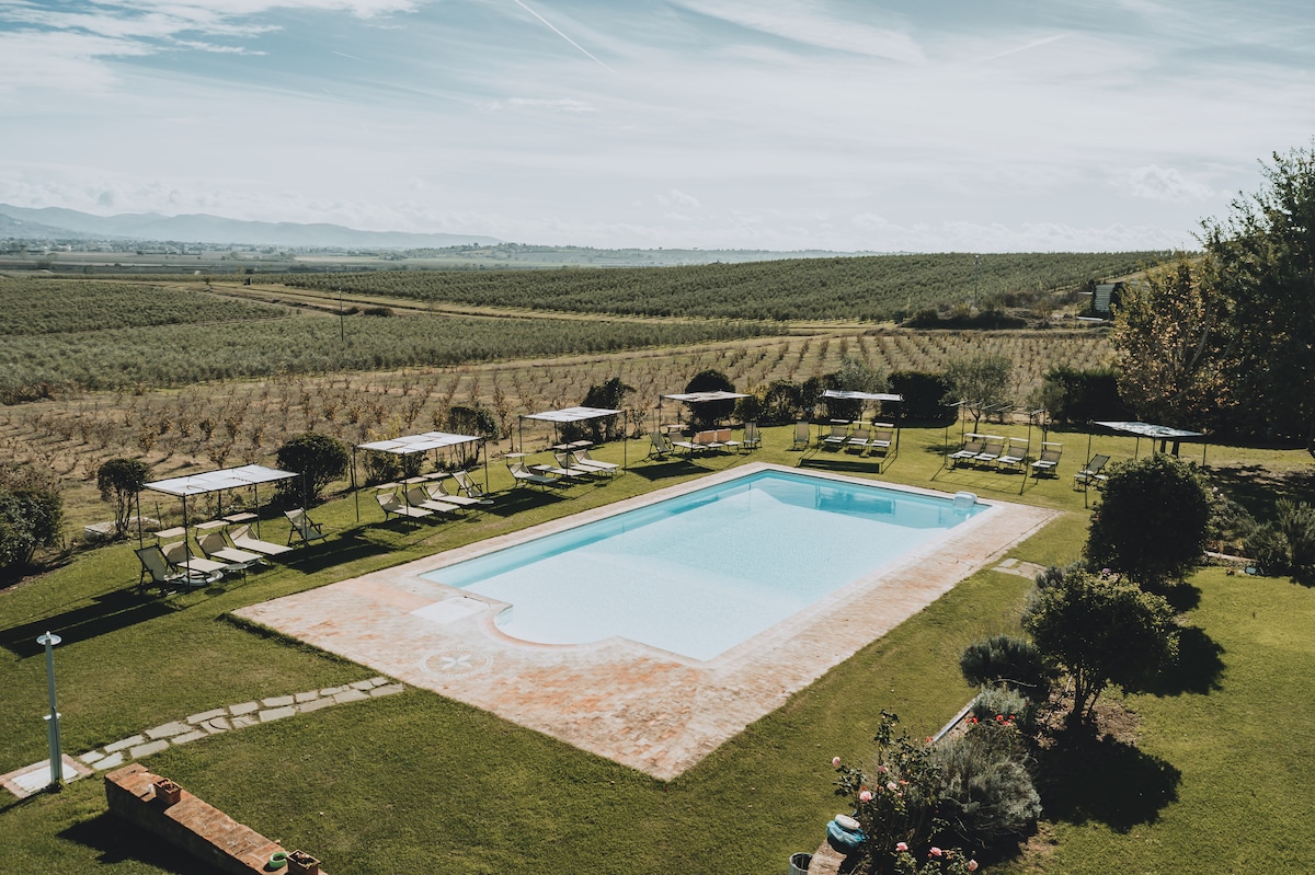 プール付きの緑に囲まれた典型的なトスカーナの家
