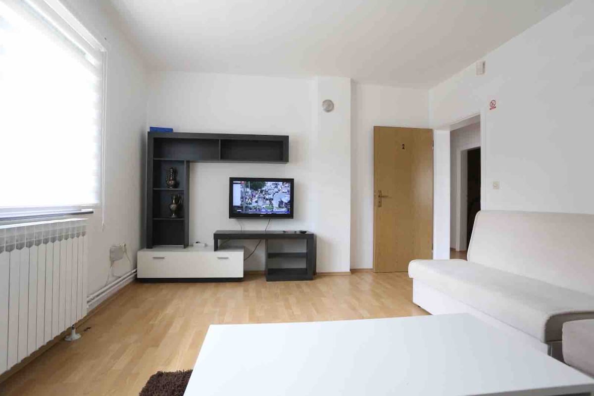 サラエボで最も美しい家のひとつで、きれいで高級なアパートがあなたを待っています。 向かいにはオリンピックの屋内スイミングプールがあり、バルコニーからは街と周辺の山々の壮大な景色をお楽しみいただけます。 家の中にはレストラン、コーヒーハウス、アートスタジオがあります。 静かなロケーションにもかかわらず、このアパートは人気のあるサラエボ市内中心部( 3.9km )と旧市内中心部( 6.1km )から遠くありません。公共交通機関の接続が非常に良好です。