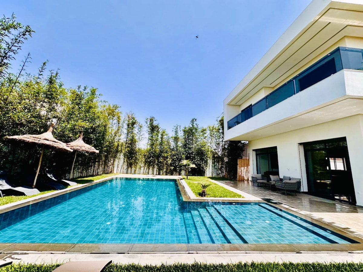 VILLA 3 chambres option Jacuzzi 🤩 Piscine sublime et SANS VIS À VIS (Option Piscine chauffée♨️) 🛁 Suite SPA JACUZZI en option 🚿 2 salles de bain 🧑🧑🧒🧒 Capacité x7 🛏️ Literie de haute qualité 🏋️ Matériel de sport 🛜 Fibre 📺 2 TV et IPTV (Netflix, beinsport…) ❄️ ☀️ 2 Climatisations chaud/froid 🚗 Garage 3 vehicules 🎮 Trampoline/PS5 📍Commodités/ en face Aéroport Glovo (Uber Eats) - InDrive (Uber) 🫡 Services : Coursier & Ménage ☕️ Petit déjeuner et repas en option