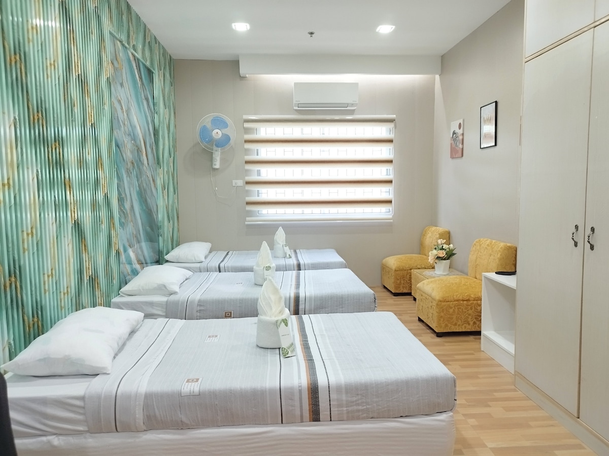 このミニマリストでリラックスできる場所はイロイロ市の中心部に位置し、モールや必見の観光スポット(カサエンペラドール、モロ教会&広場)に近いです。 この部屋にはクイーンサイズのベッドがあり、55インチソニーテレビ、高速インターネット接続の無料Wi-Fi、冷蔵庫、エアコン、電気ケトル、女性用およびリアウォッシュ機能付きビデ、給湯器(ホットシャワー)、炊飯器、IHコンロ、調理器具などの「ホテル風」アメニティを提供しています。 スイミングプール(2名様用)とジムもご利用いただけます。