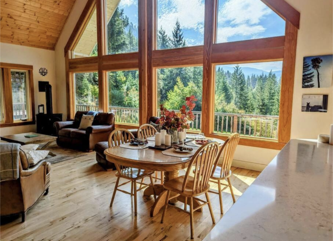 イーグルス・ネストはロマンチックな週末の休暇に最適です。イーグルス・ネストはウェナッチー川の上にあり、背景に山々が見える谷を見下ろしています。 イーグルス・ネストには、魚のいる湖まで10分、レブンワースまで25分、自転車、ハイキング、乗馬コースまで10分など、すべてが最高の場所に近いです。 また、Wi-FiとNetflix、そしてロマンチックな映画が揃ったDVDライブラリもあります。 イーグルス・ネストは、「ロマンチックな休暇」のための、最後の手頃な価格のキャビンのひとつです。