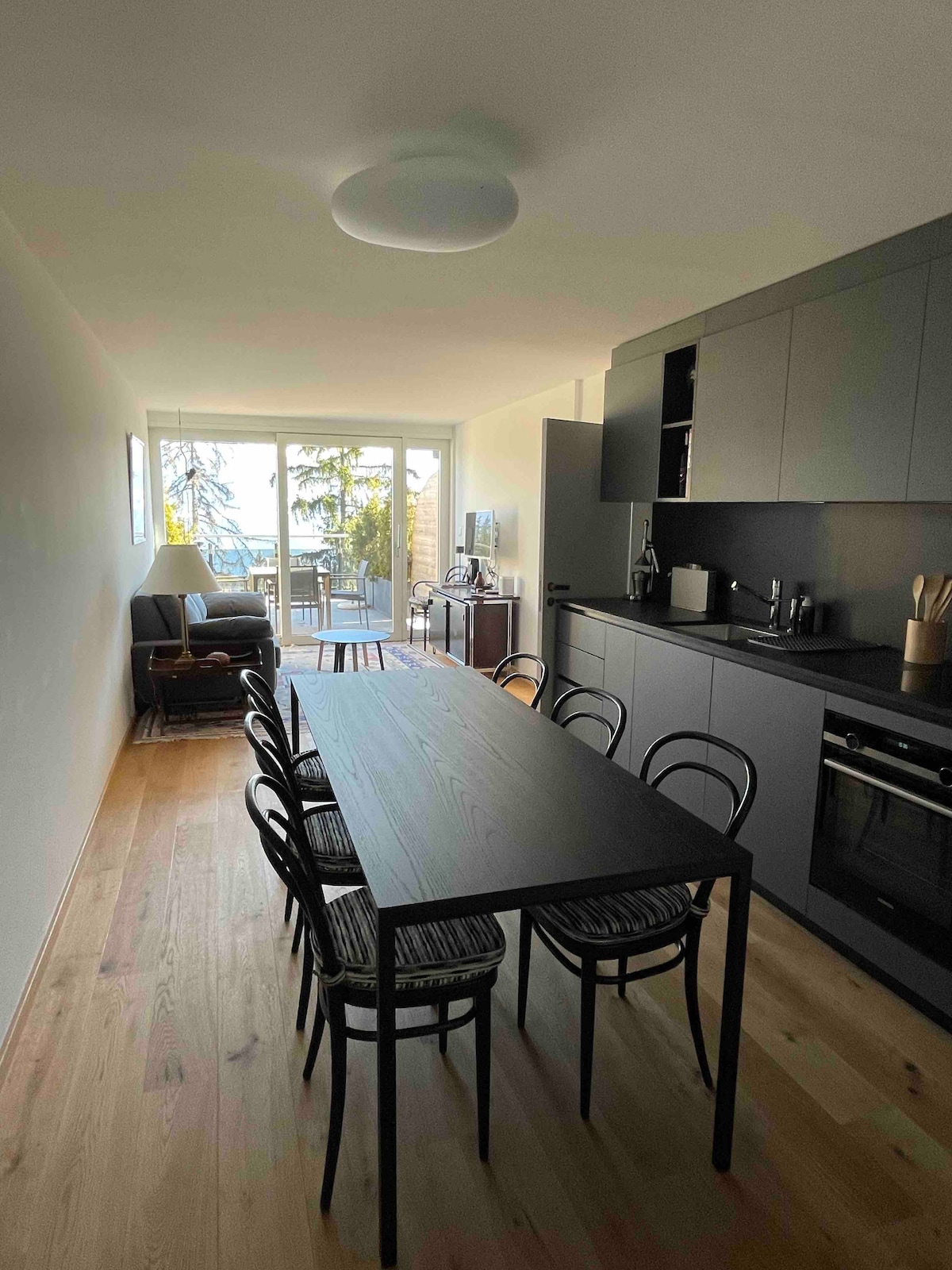 クランの中心部にある美しく改装されたフラットです! スキー場(クリーデール)まで徒歩圏内で、ゴルフ場のすぐ隣にあり、夏と冬の両方に理想的なロケーションです! 木の壁、木の床、高品質の家具/設備で装飾されています。 暖炉。 駐車場、スキールーム。