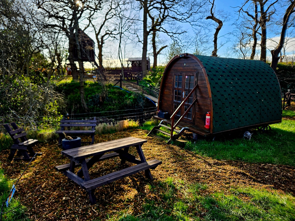 🌿 PerryTree Pods – Higher Kinnerton Escape to 27 acres of peaceful countryside beside a freshwater brook. Perfect for couples, families or quiet groups seeking off-grid nature and comfort. Enjoy the communal games cabin, treehouse, bar, firepits, BBQ, outdoor kitchen, and modern wash facilities. One glamping pod accommodating up to 4 persons. Ideally located on the North Wales–England border, just 5 mins from A55 (J36). Group stays: airbnb.co.uk/h/perrytreegroups