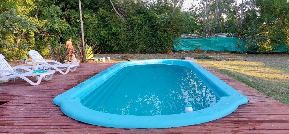 キンチョとグリル、土製オーブン、3420平方メートルの緑地に囲まれた18平方メートルの屋外プールを備えた5つ目の家。 結婚式、誕生日、家族やビジネスの集まりなど、あらゆる種類のイベントに最適です。 また、設備の整ったキッチン、3つのバスルーム、2つのベッドと布団、WiFi、スマートテレビもあります。 また、屋外用の家具一式と50人分の食器一式もご用意しております。