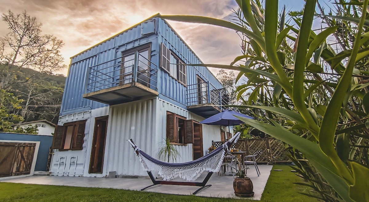 Aproveite com sua família nesta acomodação ecológica e minimalista, praia particular e pé na areia. São dois containers de 30 metros quadrados cada. Uma moderna evolução e inovadora forma de hospedar. Cada container possui: 1 quarto casal e 1 solteiro com bicama, possui 01 banheiro e uma mini copa pra café da manhã. Em frente a eles tem um grande deck de 70 metros quadrados, com cobertura (pergolado), piscina com hidromassagem e um completo lounge. Tem AC em todos os cômodos dos containers.