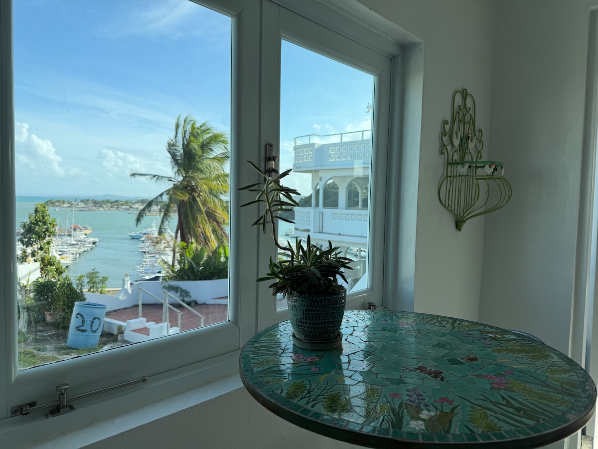 最近改装されたペントハウスには、クイーンサイズベッド2台、リビング/ダイニングと一体化したフルキッチン、バスルームがあります。サイドドアを開くと広々としたパティオがあります。エスペランザのマレコン(主要観光地)まで徒歩わずか7 ~10分で、生活必需品を買うことができるグリーンストアにも近いです。島で最速のWi-Fiを提供しておりますので、ゲストはインターネットに接続したままで済みます。1階にはマンゴーの木があるトロピカルガーデンがあります。 このユニットには新品のアップグレードされたエアコンがあります!