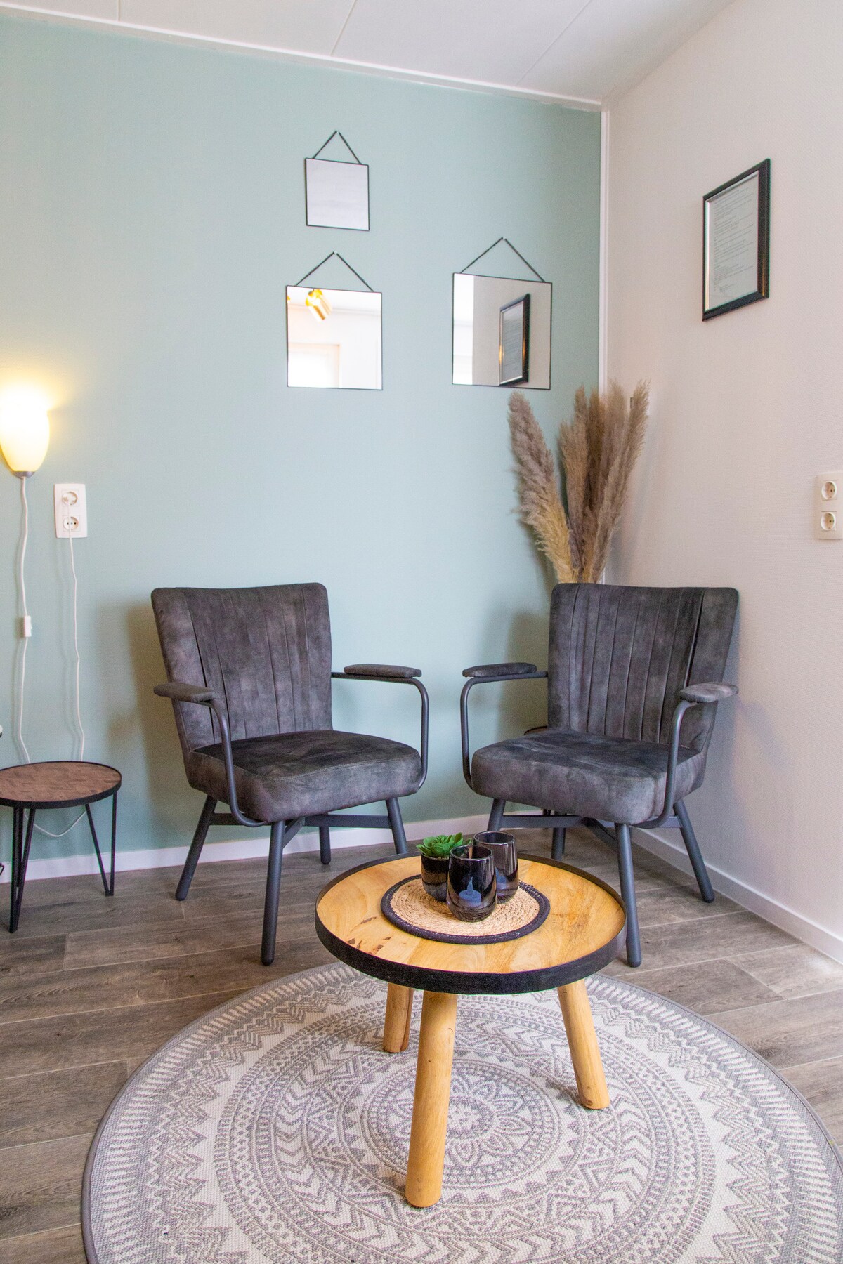 コンパクトでセンスのあるシティングルームダイニングエリア、絶景。ネスプレッソ冷蔵庫の誘導プレートと電子レンジを備えた簡易キッチン。 基本的な材料(コーヒーティー、ピーマン、塩、オイル、酢)があります。プライベートトイレ。 リヤテラスドア(エントランスもあり)プライベートガーデン( SW上)ベランダと2つ目のテラス(ダイニングテーブル、2つのサンラウンジ、ガスバーベキュー)。 リビングの階段から床まで、明るい高級寝室のキングサイズベッド、モダンなバスルーム、シャワー、ダブルシンクが備わっています。 とても静かで、ドンブルクとビーチから1.5キロ!