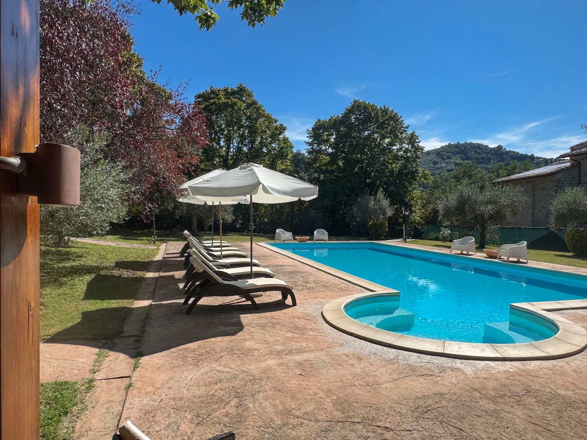 ミネラルソルトプール付き、ウンブリアのプライベートヴィラ