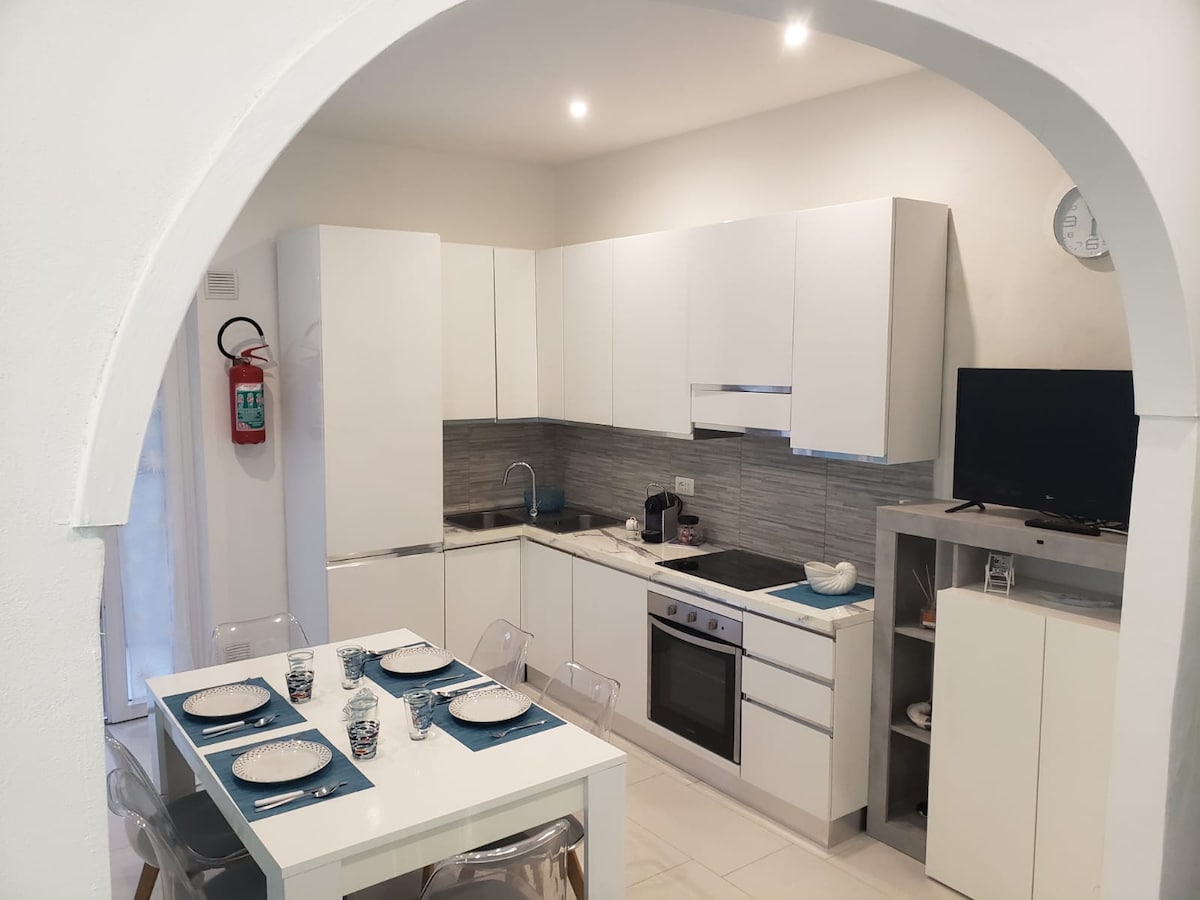 Rilassati in questo spazio tranquillo in posizione centrale. Appartamento comoletamente ristrutturato, dotato di aria condizionata, una camera da letto matrimoniale e divano letto in soggiorno, cucina, bagno, terrazzo, veranda coperta adibita a lavanderia . Può ospitare fino a 4 persone. l' appartamento si trova al 3 piano senza ascensore