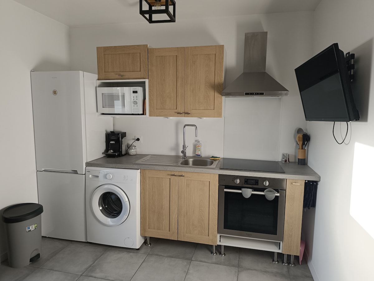 私たちの家の中にある独立したワンルームで、中心部に近く、日曜日の夕方から金曜日の朝まで利用可能です。通学生や出張者に最適です。この15平方メートルのワンルームアパートは、新しい140 cmのベッド、シャワーとトイレのある開放的なバスルーム、キッチンエリアを完備しています。 快適なベッドと独立した空間で、お客様のご満足いただけることと思います。 /!\ 喫煙厳禁の宿泊施設です。家の前での喫煙は許可されていません。