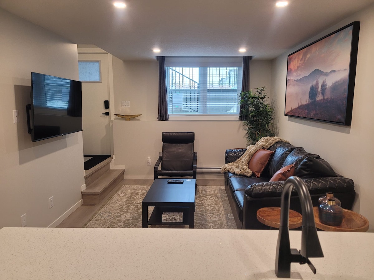 美しい寝室1部屋の貸切地下アパートで、広々とした中心部に位置し、独立したエントランスがあります。 ショッピングモールや公園まで徒歩5分、バス停まで徒歩1分。 すべてのモダンなアメニティを備えたプライベートアパート。座って/立って使えるワークスペース、モダンなキッチン家電、広々としたリビングルーム、ダイニングセクションとキッチン、水/氷ディスペンサー付きの標準冷蔵庫、プライベートランドリールーム。 新しいスマートテレビで無制限の高速Wi-Fi、Telus、Netflix、Amazon/Disney +。ウェルカムウォーター/コーヒー/紅茶とクリーム。