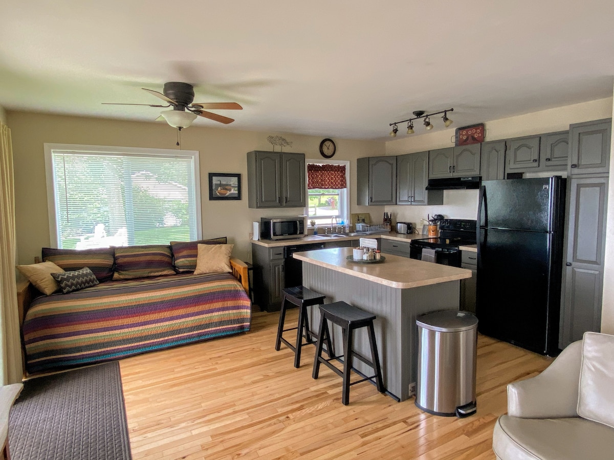 Lakefront cottage located in Highgate Springs, Vermont, on the Canadian border. The 2-bedroom cottage sits adjacent to the owner-occupied main house, on a large one-acre lot, with 120 feet of Lake Champlain shoreline. Enjoy the stunning sunset views while sitting on the deck overlooking the water. Private dock included. Montreal and Burlington each 45 minutes away. Available level-2 car charger. Well-behaved pets allowed. Super-fast WIFI!