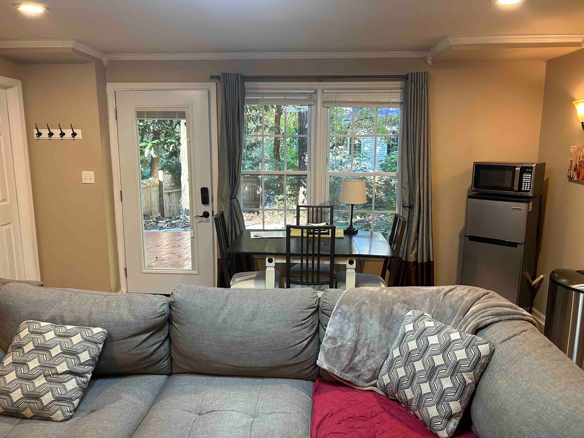 キャンドラーパークの近くにある改装済みバンガローのキッチン付き独立したゲストハウス。エモリー大学とミッドタウンに近いです。 メインハウスの隠れた裏のポーチと、造園されたフェンス付きの裏庭は、カップル、ご家族、グループ、お子様、ペットに広々とした屋外生活を提供します。 音楽/スポーツファンや乗り継ぎに最適で、無料のゲスト用駐車スポットと洗濯機/乾燥機があります。サブスクリプションでジョージア水族館とアトランタ動物園の50%割引(大人1人40ドル、25ドル)が利用できます。 オプションの2つ目の寝室の追加料金が適用されます。