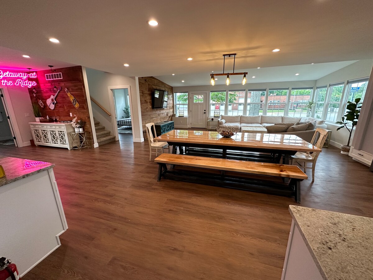 森に囲まれ、人里離れた楽園を作り出していますが、マーレットからわずか5分です。 この広々としたログハウスには、開放的なリビングルーム、75インチテレビ、設備の整ったキッチン、ダイニングエリア(8席、オフィス1台(無料Wi-Fi)、キングベッドルーム1室、フルバスルーム1室、洗濯機・乾燥機付きの洗濯室、ガス暖炉、エアコン+暖房、上階のロフトエリア/プレイスペース、クイーンベッド付きロフトルーム1室、クイーンベッドルーム1室、1.75バスルームがあり、停電が発生した場合でも電力が確実に供給されるようにバックアップ発電機が装備されています。 家族の集まりに最適で、ペット連れにもおすすめです。