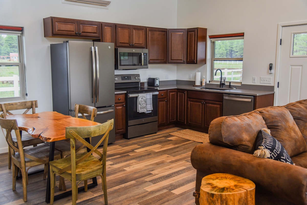 「私たちの山の別荘へようこそ。 これ以上良い場所はありません! キングサイズベッドとクイーンサイズベッドを備えた美しく広々としたワンルームアパートメントです。 フラッグスタッフのダウンタウンからわずか15分、アリゾナ・スノーボウルから5分です。 山の旅にぴったりの宿泊先です。 渋滞の町を通る必要はありません。 寝坊してもゲレンデ、マウンテンバイク、ハイキングを一番乗りで楽しむことができます。 また、壮大なグランドキャニオンから60マイルです。 ぜひご滞在ください