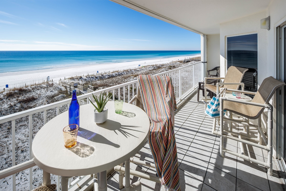 デスティンのビーチフロントコーナーコンドミニアム - パノラマの湾岸ビュー 夏の日程がちょうど公開されました! デスティンのビーチフロント・コンドミニアムで豪華なひとときをお楽しみください!この3ベッドルーム、2バスルームのユニットからは、リビングエリア、キッチン、マスターベッドルームからガルフのパノラマビューが楽しめます。改装されたバルコニー、温水プール、テニス、バスケットボール、ピックルボール、ジム、サウナをお楽しみください。3月から10月まではビーチチェアとパラソルが含まれます。便利なエレベーターと階段アクセス。忘れられないビーチ休暇のために、デスティンのバケーションレンタルを今すぐご予約ください!