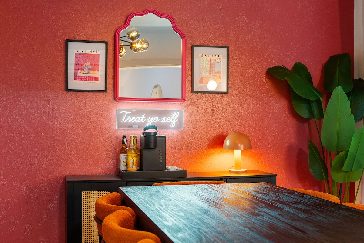 こちらのユニークで静かな宿泊先で、ごゆっくりおくつろぎください。 この400平方フィートのガレージ改装のプライベートなお部屋は、アメニティが充実しています。 ジェット式バスタブ、ビデ、マッサージチェア、形状記憶マットレス付きキングベッド、65インチテレビ、ホームシアター、光ファイバーWi-Fi、キッチン、コーヒー&ティーバー、杉のクローゼット、調光可能な照明、ステージ2 EV充電、車道駐車場、暗証アクセス、ランドリールーム、高級タオル2枚、スパローブ2枚。 スマートテレビとプロジェクターには、ゲスト用にHulu、Prime、Apple TV、Netflixが揃っています。