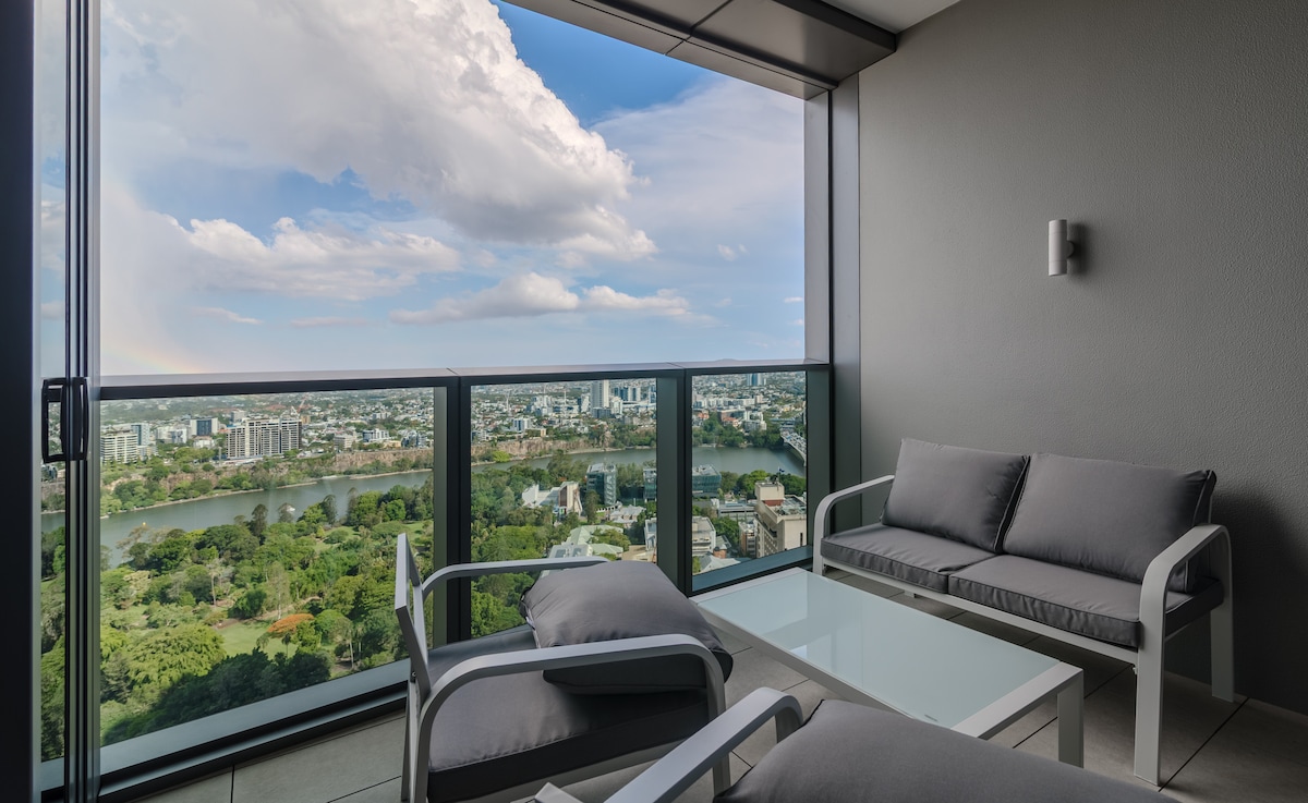 Experience elevated comfort in this Diamond-Class 1BR retreat on Level 63 of Queenâs Wharf. Enjoy sweeping river & city views, electric indoor balcony windows, modern interiors, high-speed Wi-Fi and 1 free off-site parking space just a short walk awayâperfect for couples, corporates and Brisbane getaways. â No Added Cleaning Fee â King Bedroom & Sofa Bed (Sleeps 4) â Full Kitchen & Open Living â Smart TV & Wi-Fi â Pool, Gym, Sauna & Restaurants â 1 Free Parking Space Learn more below ð
