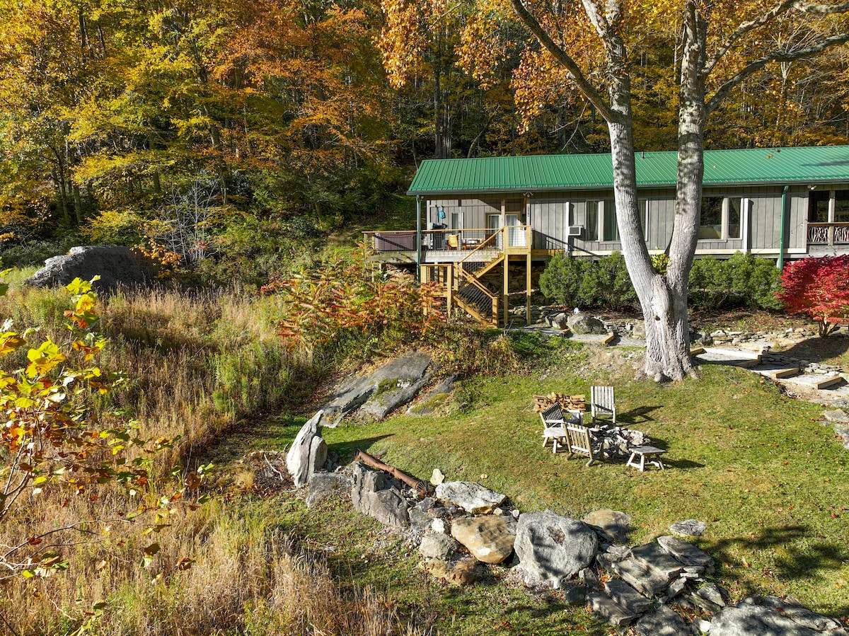 ブローイング・ロック近くの、小川沿いの高級素朴な2階建て