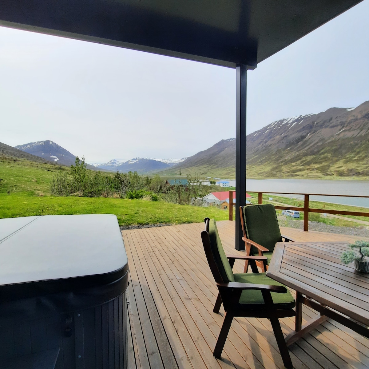エイヤフィヨルズルのフィヨルドに面した広々としたオープンスペースロフトからは、山と海の絶景を一望できます。 設備の整ったキッチン、快適なキングサイズベッド2台、床暖房付きバスルーム、広いオープンダイニング/シッティングエリアをお楽しみください。 専用の玄関とキーボックスがあり、チェックインとチェックアウトが簡単です。