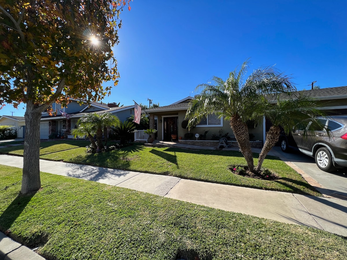 Park like property with lots of trees and Hawaiian style in the Heath of OC. About 2.5 miles to Disneyland and Knott Berry Farm. Uber or Lift cost about 15-20$ one way. Walking distance to lots of restaurants, shopping centers, grocery stores and many more for your travel and daily needs. Very much anything you need is in walking distance. Parking on site. Washer and dryer are available upon request for stay 3 days or longer.