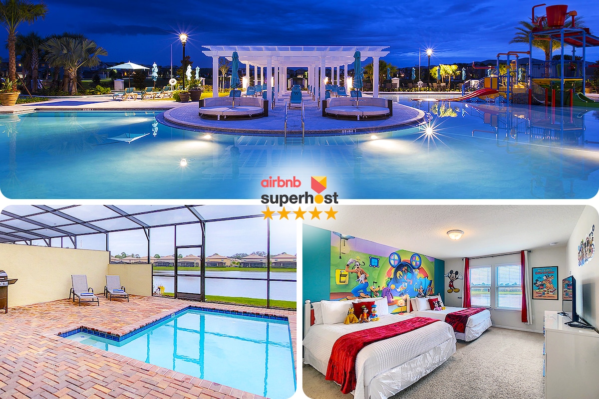 Just minutes from Disney World and Universal Studios, this condo places you in the heart of Orlandoâs top attractions, including Disney Springs, Islands of Adventure, SeaWorld, Magic Kingdom, Epcot, two outlet malls, and more. Relax on your private balcony with breathtaking views of Lake Bryan, or enjoy the resort-style pool with a full Tiki bar and dining menu. Additional perks include free parking, 24-hour security, and complimentary HBO & Netflix. No deposit required and no extra fees.
