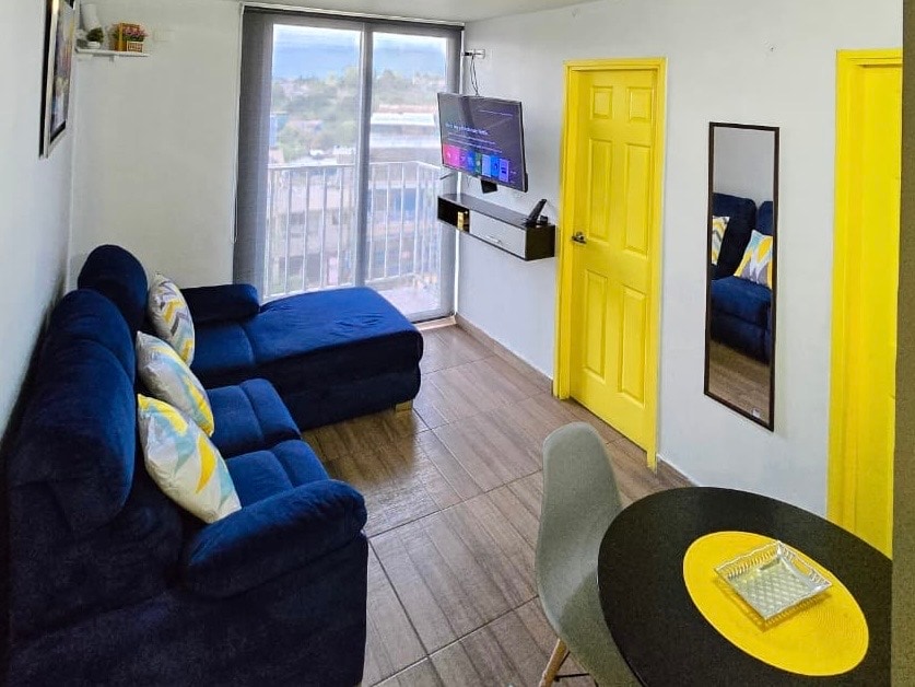 Imagine unwinding after a long day with a delicious complimentary coffee on our furnished terrace. This luxurious apartment, just 15 minutes from the American Embassy, offers 2 bedrooms with private baths, blackout curtains, and AC for total relaxation. Enjoy a fully equipped kitchen, free washer and dryer, and three TVs with Netflix. It’s the perfect spot to walk to Mall Multiplaza, banks, and restaurants. Ideal for 4 guests—and pets are welcome!