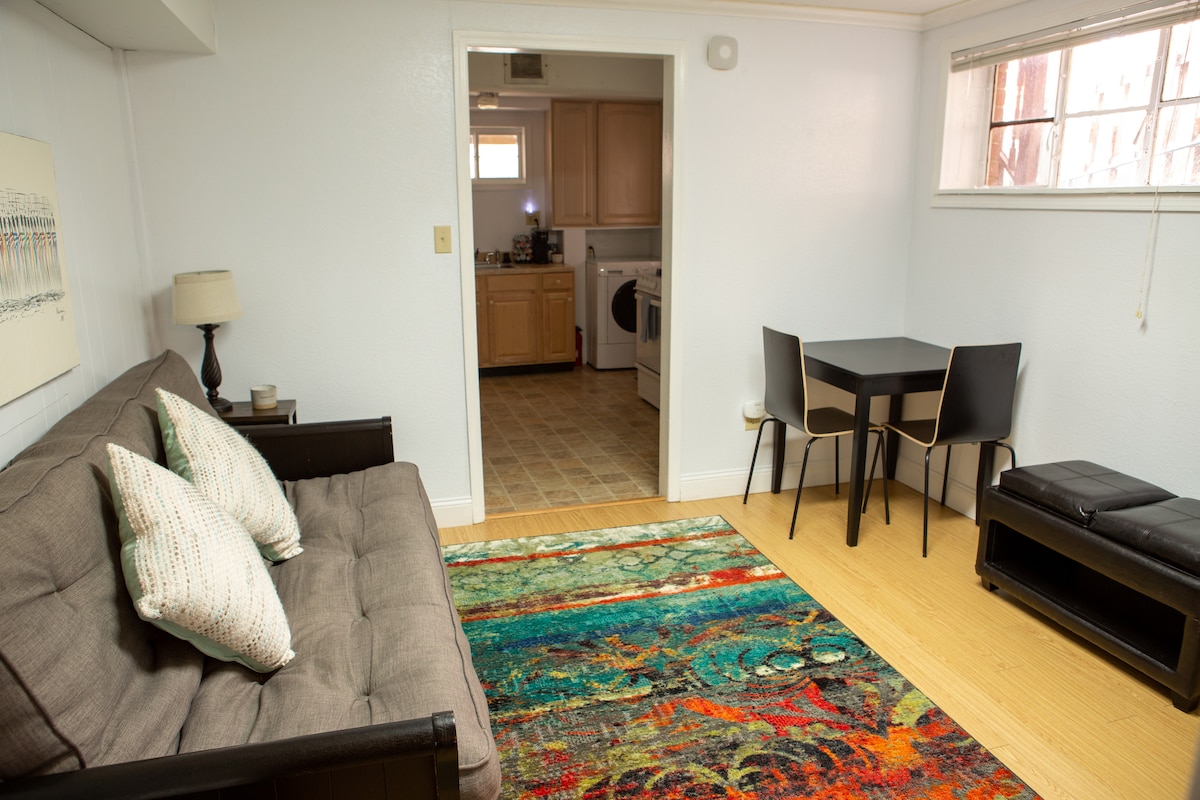 好きなときに出入りしてください。 完全なプライバシー、安全、そして平和をお楽しみいただけます。 アパートは少し狭いですが、必要なものはすべて揃います。 このユニットには、フルバス、暖房/エアコン、キチネット、プルダウン、クイーンサイズのベッド、Wi-Fi、洗濯機/乾燥機、冷蔵庫、バーベキューグリルとサイドバーナーを備えた屋外パティオ、アイロン/アイロン台、ブロードライヤー、トイレタリーが備わっており、快適に過ごすために必要なものがすべて揃っています。 ナショナル空港まで6マイル。 バス停まで1ブロックです。
