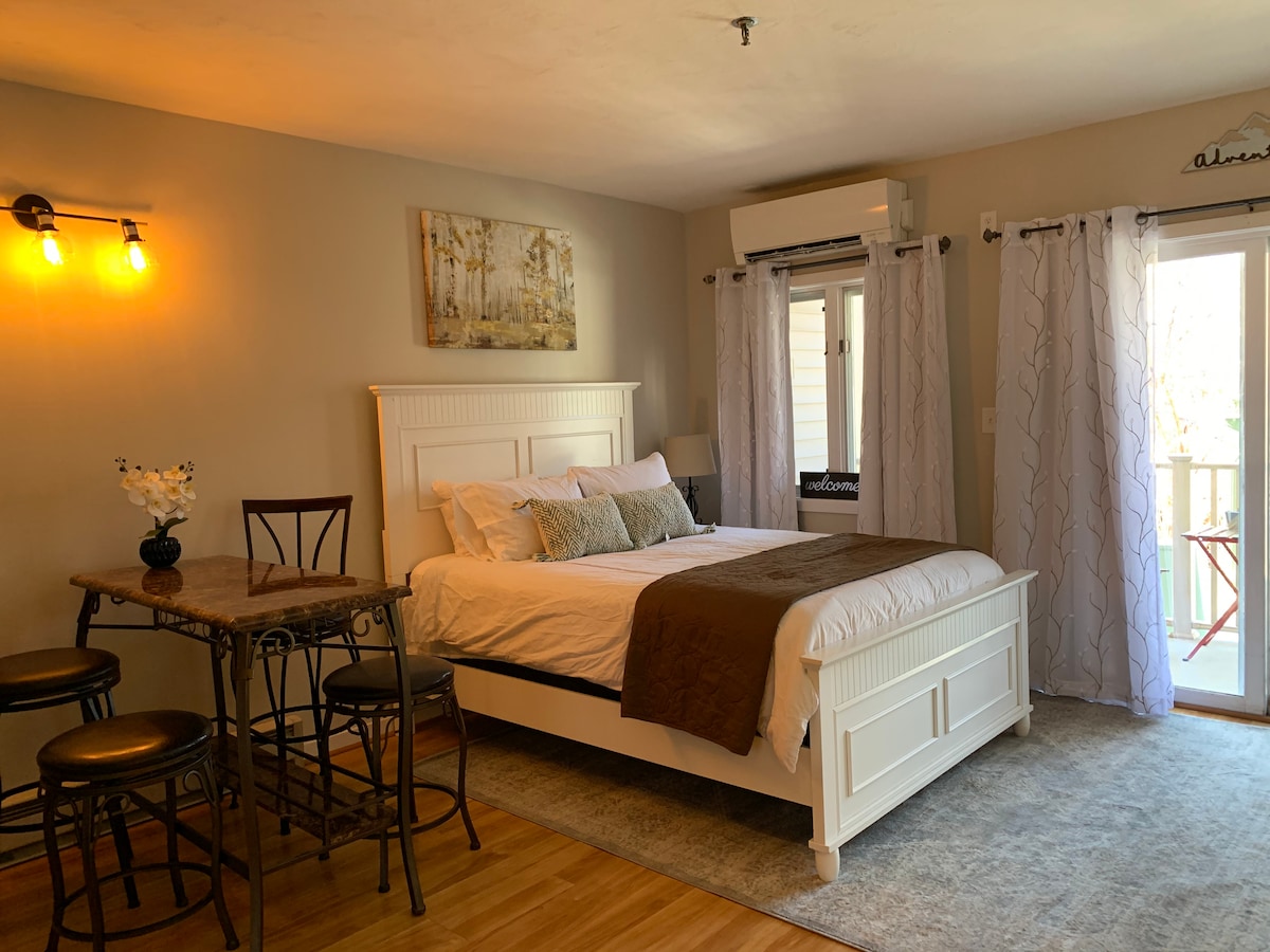 カーサージ山の麓の谷にあるニューハンプシャー州ウィルモットの素敵な205年の歴史を誇るディープウェルファームの古い納屋の2階にある、キングサイズベッド1台、バスルーム1つの快適なアパートをお楽しみください。 素朴なむき出しの梁が楽しめますが、フルキッチンとランドリーのモダンな設備が、短期から長期の滞在を楽しくしてくれます。 ビーチとアメニティを備えた地元の池、複数のハイキング/サイクリングコースがあなたのアウトドアアドベンチャーを待っています。