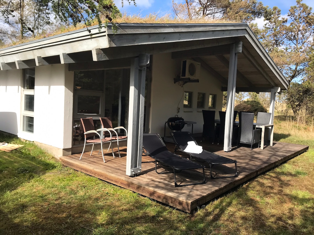 デンマーク北海の、ロッケンとブロッカスの近くにある、とても素敵な自然の砂丘と木々に囲まれた、2009年に建てられた新しい居心地の良いサマーハウスです。美しいビーチからわずか350 mです。風や隣人から解放された素敵なテラスがたくさんあります。家族全員が使える部屋があり、大きな窓からは素敵な光と自然が見えます。家の中のものはすべてとても良質です。1 ~2名様用のスパ付きの素敵なバスルーム、13平方メートルのアクティビティルーム。 遊び場とミニゴルフ場はわずか100メートルの距離にあります。料金には電気、水道、暖房などが含まれています。