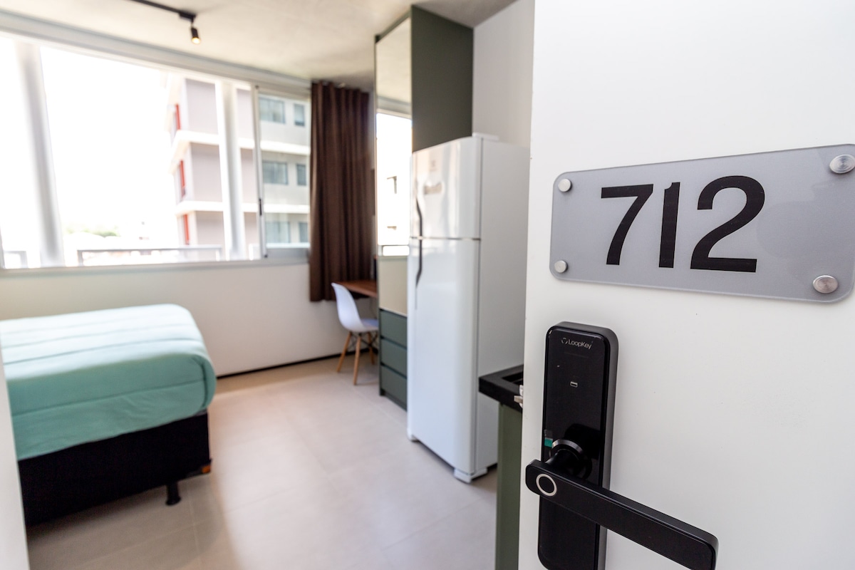 遮光カーテン、エアコン、スマートテレビ、300メガのWi-Fiインターネットを備えた、快適で静かな空間の完全なアパート。 - ベッドリネンとバスタオルをご用意しています。 -ヘアドライヤー、アイロンをご用意しています。 注:共用エリアは予告なしに予防メンテナンスが行われる場合があります。