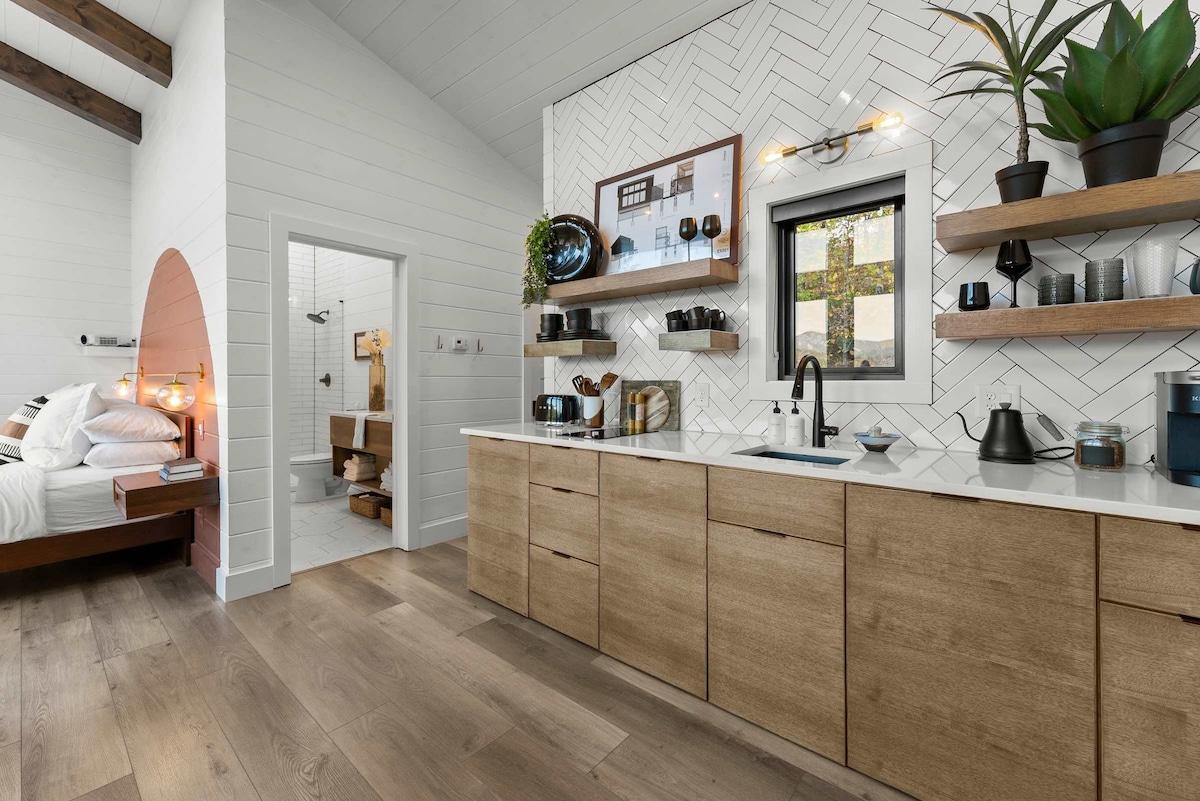 ブルーリッジ・パークウェイから11分未満、アシュビルからわずか20分の場所にある、温かく居心地の良い4ベッドルーム3バスルームの山小屋に逃避行しましょう。 専用バスルーム付きのキングスイート2室と、さらにプライバシーを確保できる3つ目のスイートベッドルームでくつろぎましょう。 魅力的なキッチンで集まり、暖炉のそばでくつろぎ、周囲を囲むデッキからの景色を満喫しましょう。 ゲームと映画が楽しめるゲーム&ムービールームで遊んだ後は、星空の下、薪ストーブのそばでくつろぎましょう。