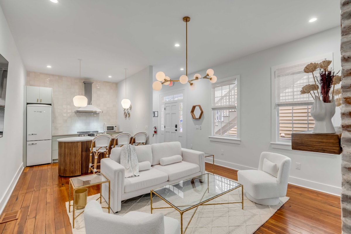 Turn back time in this refined historic Charleston residence (OP2025-06356). Soaring 12-ft ceilings, polished wood floors, and grand sash windows set the tone for an elegant retreat. A master bedroom and curtained sunroom each offer king beds for flexible sleeping. Located in a quiet, walkable historic downtown neighborhood. Perfect for couples or a sophisticated girls’ weekend. Private entrance, thoughtfully designed 1,000 sq. ft. interior. Exclusive off-street parking with EV charger.