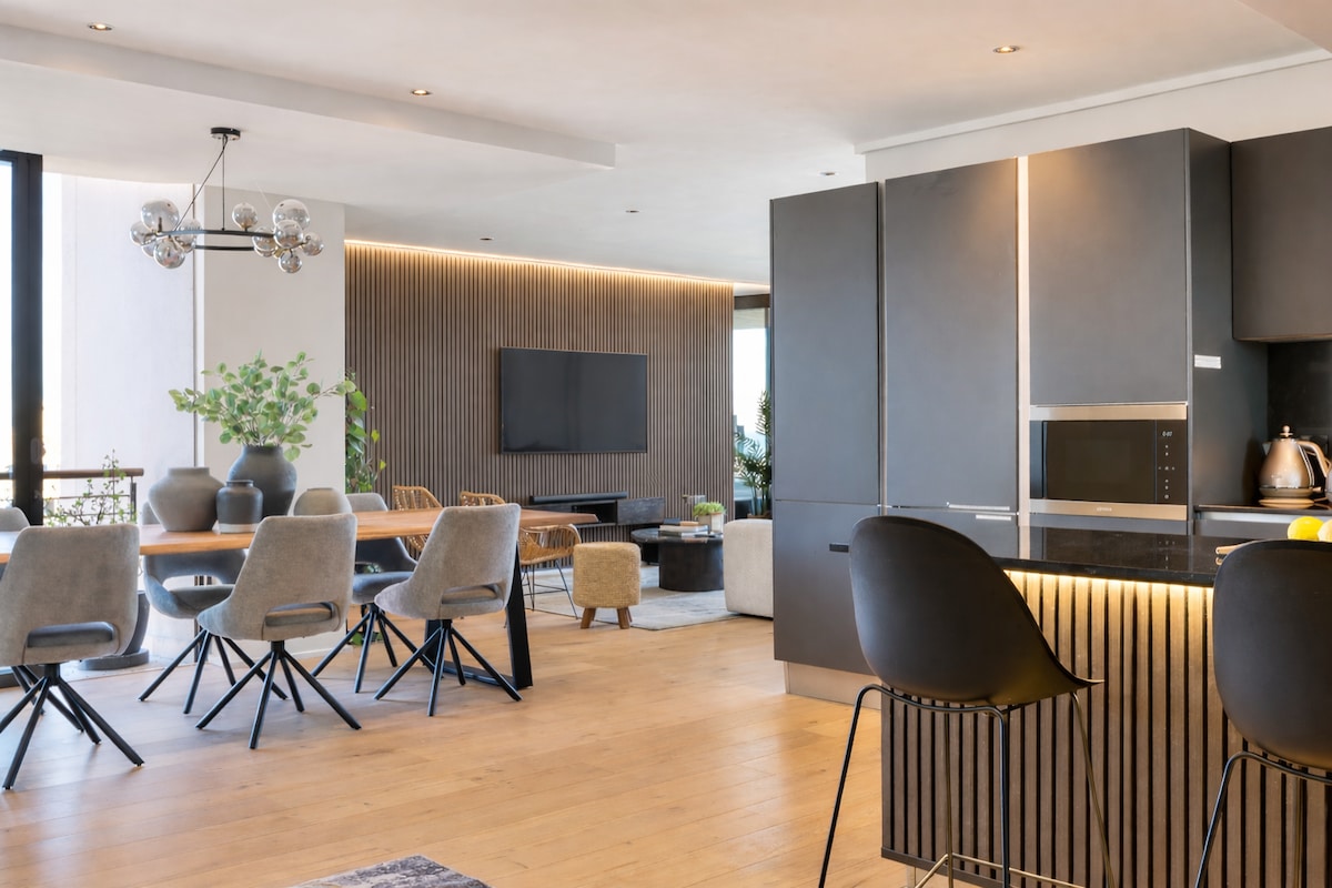 ケープタウンで最も人気のある郊外の1つであるアッパーフレズネイにある豪華な聖域は、象徴的なエラーマンハウスのすぐ上に位置しています。この新しいペントハウスは、光、空間、息をのむような景色が特徴の滞在を提供します。 広大なプライベートバルコニーからは、アパートの特徴である大西洋、ロベン島、ライオンズヘッドの比類のない360度の景色を楽しめます。 アパートはシーポイントプロムナードまで徒歩すぐで、V&Aウォーターフロントとキャンプスベイまで車ですぐです。