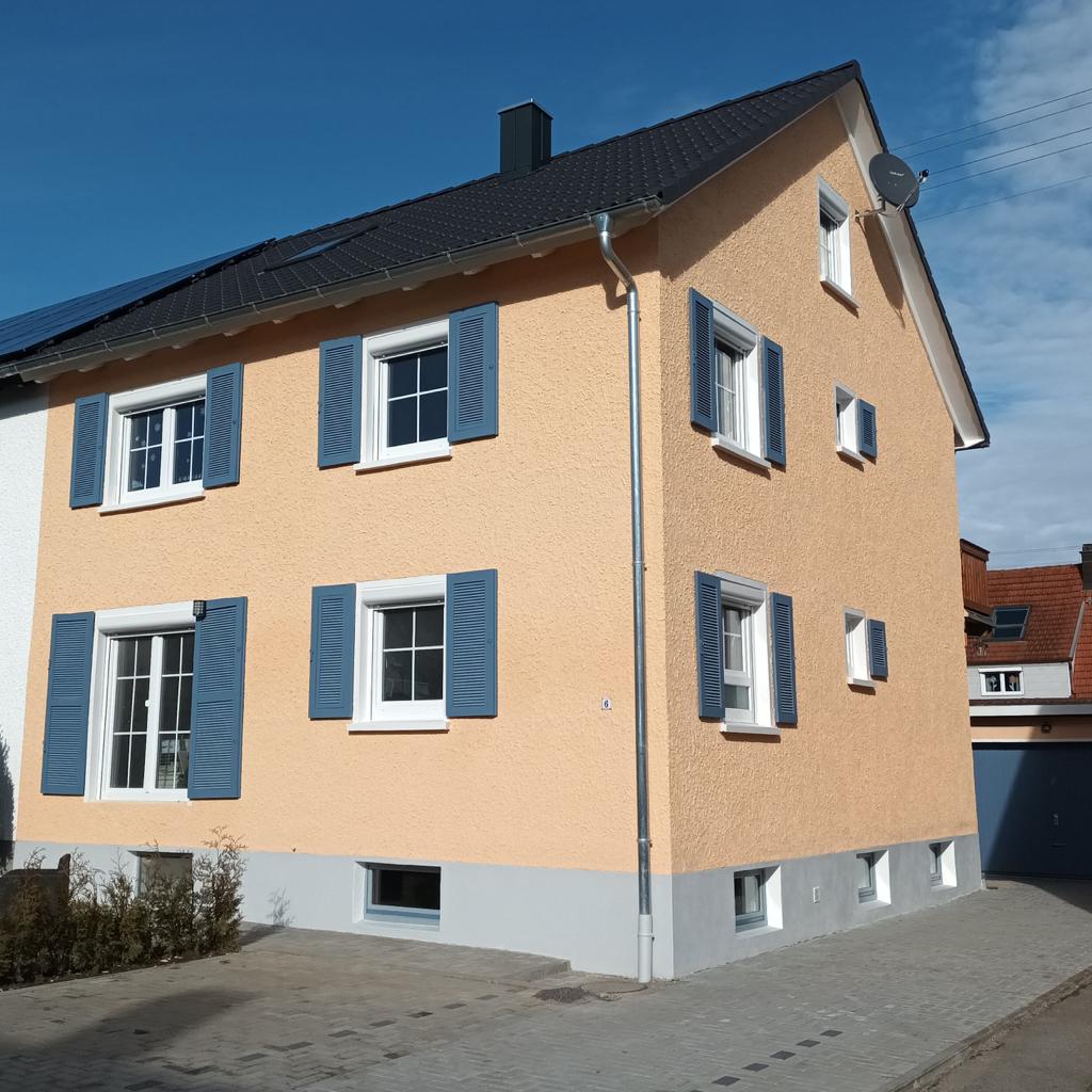 The apartment is on the ground floor of an old farmhouse, newly renovated and modernly equipped. Excellently located, between the Black Forest, Lake Constance and Alb. Ideal for 2 people. Living-bedroom with sitting area and double bed, blackout blinds. Fully equipped kitchen: Senseo coffee machine... Daylight bathroom with rainforest shower. The apartment is self-contained, we live upstairs and use the same entrance. The apartment is pet-free, but our cat lives in the house and garden.