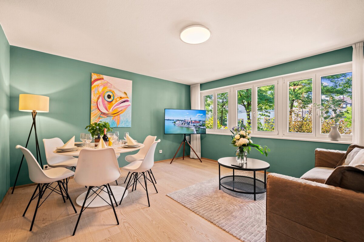 ã¢ããŒãã¯æ¹è£ ãããã°ããã§ã倧ããªçªãããšãŠãæãããå®¶å ·ã¯ã¢ãã³ã§ãããªãã³ã°ã«ãŒã ã¯å±æ ¹è£ã«ãããå±±ãšæ¹ã®æ¯è²ããããŸãã ããªãŒããªãã·ã£ãã§ã³ãžåãããã¹åãšããŒãºããŒã°/Ãberlingenã¯ããå€ã«ãããŸããæ¹ã¯åŸæ©5åãå±å€ããŒã«ã¯åŸæ©3åã§ãã ãã®ãšãªã¢ã«ã¯ããŸããŸãªã¬ã¹ãã©ã³ïŒããã«ãã¿ã€ã®è»œé£ããããã§ãªã¢ãªã©ïŒãããããã¹ãŠåŸæ©åå ã§ãã