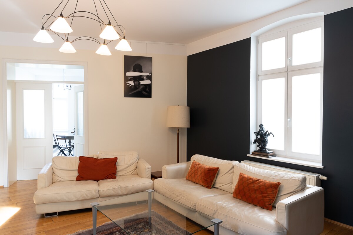 ベルリンの歴史的中心部にある、広々としたエレガントな専用スイートへようこそ。市内の最も重要なランドマーク、素晴らしいレストラン、活気のあるショッピングエリアから徒歩ですぐです。完全なプライバシー、穏やかな庭園の眺め、静かな睡眠、洗練されたモダンな快適さをお楽しみください。床から天井までの窓が自然光で空間を満たし、豪華なキングサイズの寝室、高級キッチン、レインシャワーとバスタブを備えた洗練されたバスルームが、街の真ん中に静かな隠れ家を作り出します。