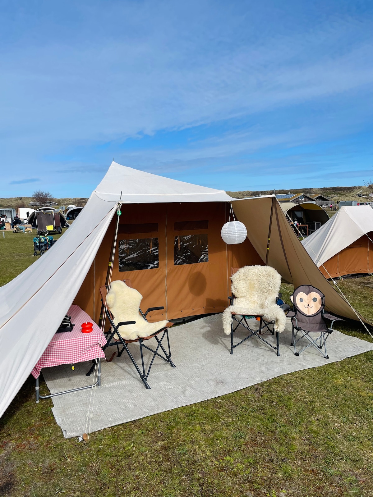 フリーランド島のストルテメルクキャンプ場の素晴らしいロケーション! 砂丘でキャンプ、ビーチまで徒歩2分! 設備の整ったテント2つ。 メインテント: - キッチン -クーラーボックス - テーブル + 椅子 - ダブルベッド(マットレス2枚、80x200) - 太陽光発電ランプ+携帯電話充電用バッテリー。 サイドテント - ダブルベッド(マットレス2枚、80x200) その他 - ベビーチェア ご自身でお持ちください。 - 寝袋、シーツ、枕カバー。 滞在後、ご自身で清掃してください。