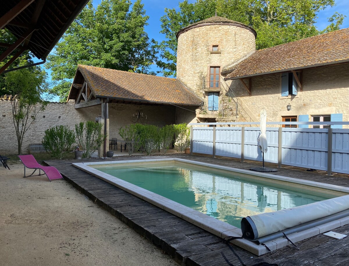 Découvrez un duplex idéalement placé sur les bords du Rhône, au coeur d'un moulin du XV° siècle. Vous y trouverez un gïte récent, propre, confortable, bien équipé et pourvu d'espaces lumineux Entre Lyon, Bourg-en-Bresse, Geneve et Annecy; proche de la PIPA, de la CNPE, de la Via Rhôna; ce duplex s'adresse aux couples, familles ou aux professionnels qui apprécient la proximité et le calme. Le plus ? Un balcon logia équipé d'un bain nordique privé offrant une vue sur les montagnes du Bugey