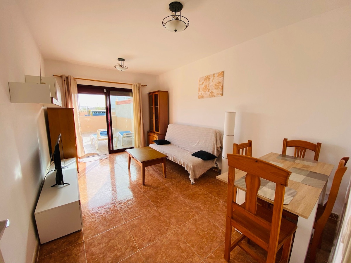 Apartamento con terraza propia y espectaculares vistas al mar y a la isla de lobos. Ubicado en el centro de Corralejo con restaurantes alrededor y la plaza del pueblo. A pocos minutos a pie de la playa, restaurantes, zona comercial, supermercados, no necesitas coche. Tiene 1 habitación con cama doble 1 sofá cama de 1 huésped y en el salón-cocina 1 sofá cama para 1-2 huéspedes. Comentarios de otra vivienda en el mismo edificio (sólo 2 viviendas en el edificio) ➡️ airbnb.com/h/corralejoholidays